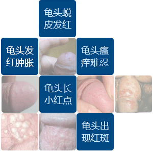 起初的时候会出现龟头有点红的症状,然后便肿胀,龟头会有灼热和瘙痒的感觉。翻开包皮,会出现充血糜烂,有渗液,甚至于出血的症状。